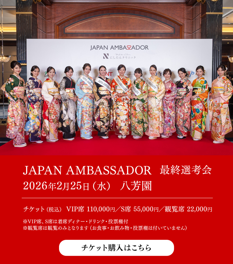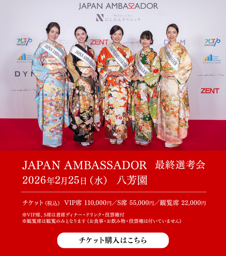 JAPAN AMBASSADORとは、日本の素晴らしさ、日本が世界に誇る”ものづくり”や高い技術、伝統工芸など、日本の「モノ」「ヒト」「コト」を国内外に積極的に発信する役割を担う大使を輩出するコンテストです。